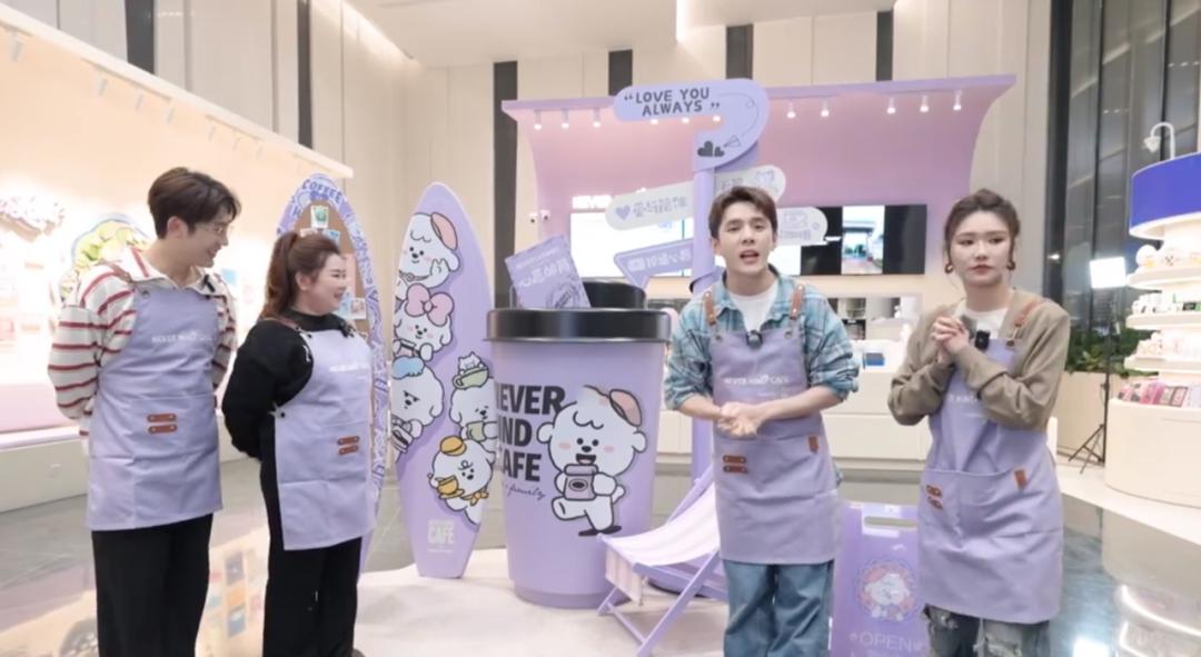 李佳琦在介绍奈娃家族咖啡店,图源:李佳琦微博视频