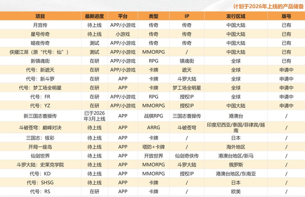 不过,中手游在去年也进行了架构调整,并大力拓展发行业务进行“找补”。25年中手游全球推出了10款新游戏,使得发行收入达到了11.61亿元,最终亏损相比2024年有所收窄,算是一个积极的信号。从它的新品储备来看,未来的策略很清晰,就是靠 “IP、小游戏、全球化发行”这三条腿走路。